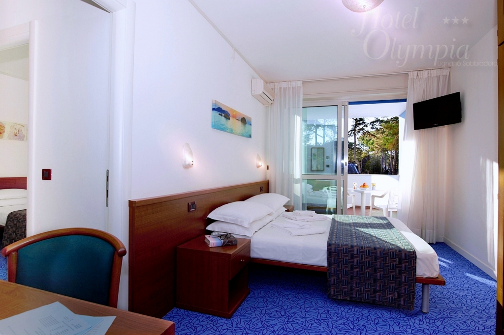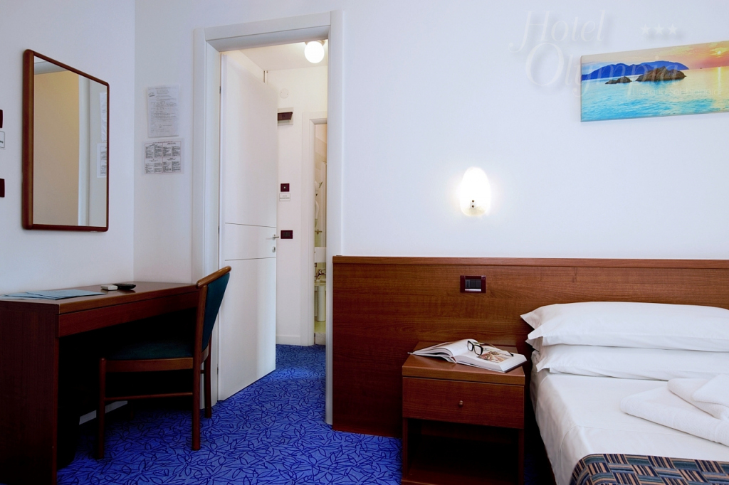 Dachzimmer mit Einzelbett und grossen Fenster, aber ohne Balkon. Ausgestattet mit Klimaanlage, Tv-Sat, Tresor und mit einenerneuerten Badezimmer mit Duschbox und Haartrockner. Strandservice und Kuhlschrank sind nicht im Preis inbegriffen