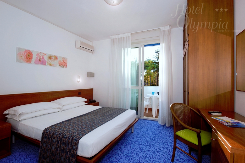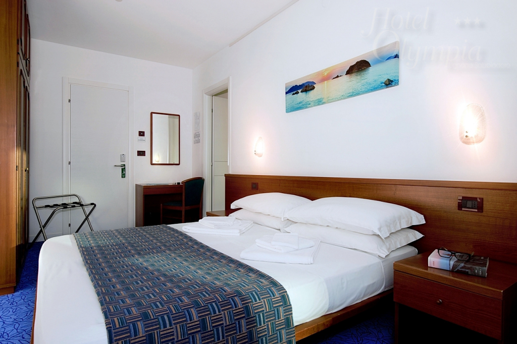 Das Zimmer hat ein Doppelbett, mit balcon. Ausgestattet mit Klimaanlage, TV-Sat, Tresor und mit einen erneuerten und geräumigen Badezimmer mit Dushbox und Haartrockner. Tiere nicht erlaubt. Klein Kühlschrank zur Verfügung